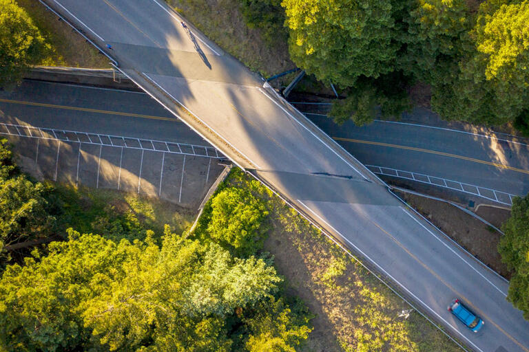 The previous bridge was constructed in 1965, along a hillside historically known to have landslides. A State-funded replacement bridge was constructed in parallel to the existing one. Once constructed, the previous bridge was demolished.